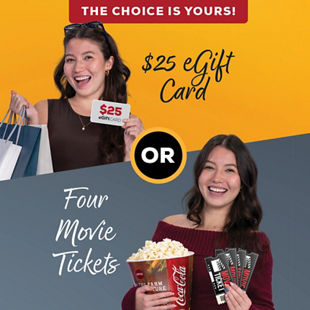Holiday Bonus! Two great rewards, one lifesaving donation! Now through November 30, get your choice of a $25 eGift Card or Four Movie Tickets! Rewards vary by donation location.